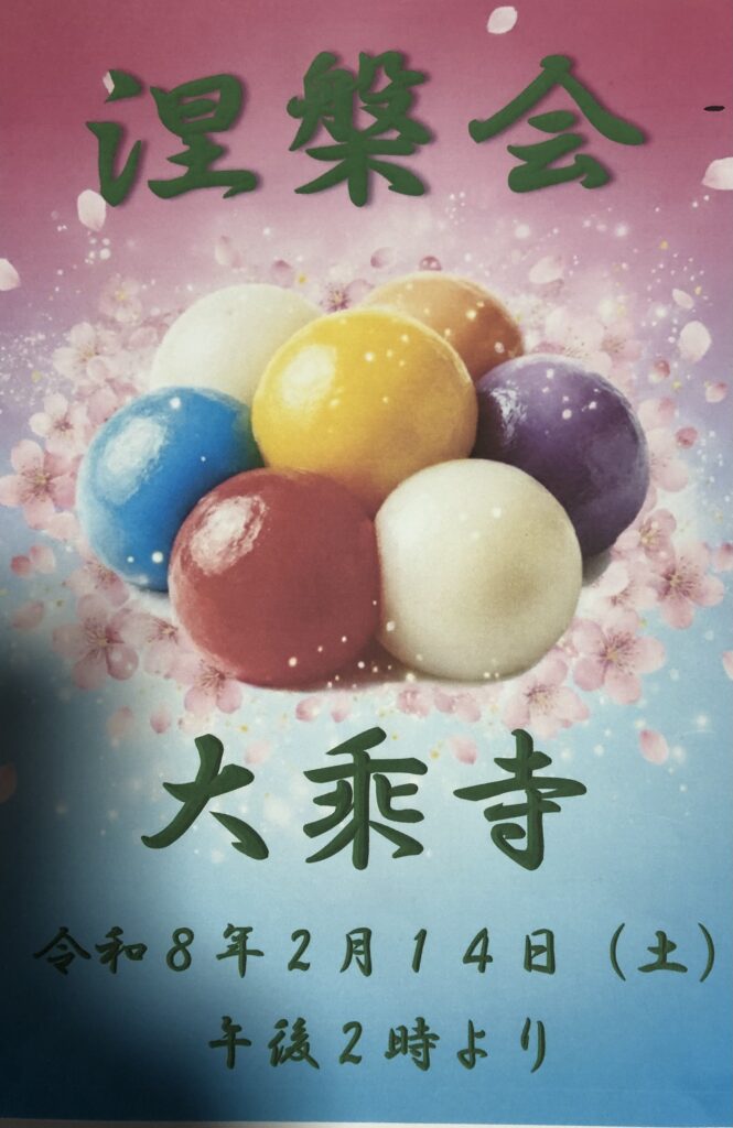 2026年2月14日(土)にかねてより告知しておりました涅槃会が、無事、執り行われました。この時期にしては陽射しもあり暖かい一日でした。